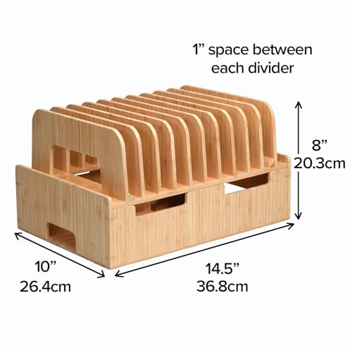 - [الأبعاد] مع الجزء العلوي والسفلي المرفق، تبلغ الأبعاد 14.5 انش (طول) × 10 انش (عرض) × 8 انش (ارتفاع) انش. توجد أيضًا فجوة 1 انش بين كل فاصل. يرجى الرجوع إلى قوائم الصور للحصول على فكرة أفضل عن الأبعاد.
