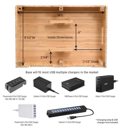 MobileVision - قاعدة شحن بتصميم 12 منفذ من الخيزران، منظم شحن لأجهزة الموبايل والتابلت بحجم عائلي للاستخدام في مكاتب الشركات والفصول الدراسية من موبيل فيجن
