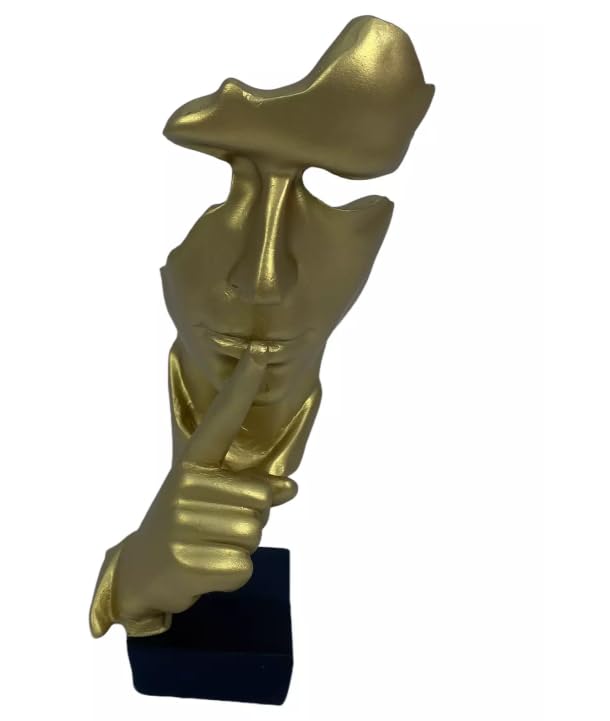 - تصميم عصري: تمثال تجريدي معاصر يصور الإشارة بالصمت بلمسة نهائية ذهبية أنيقة، مثالي لديكور المنزل الحديث والمساحات الفنية