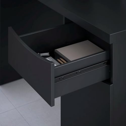 - التصميم العصري: مكتب كمبيوتر أنيق بلون أسود مع درج منحني، مثالي للمكتب المنزلي والمساحات المهنية