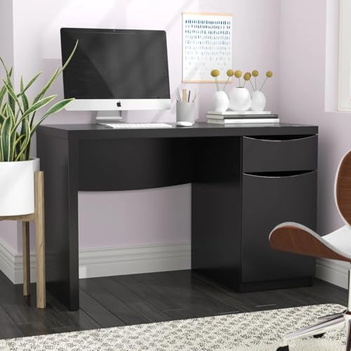 Generic - مكتب كمبيوتر أسود عصري، طاولة مكتب خشبية مع درج، 47.8 × 30.25 × 23.25 بوصة، تصميم أنيق للمكتب المنزلي