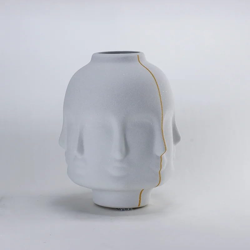 - مزايا التصميم: مزهرية سيراميك منحوتة حديثة مع لمسة نهائية بيضاء غير لامعة، مزينة بتفاصيل خط ذهبي أنيقة تضيف الرقي المعاصر