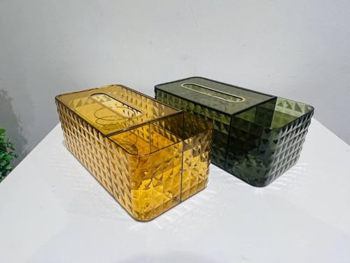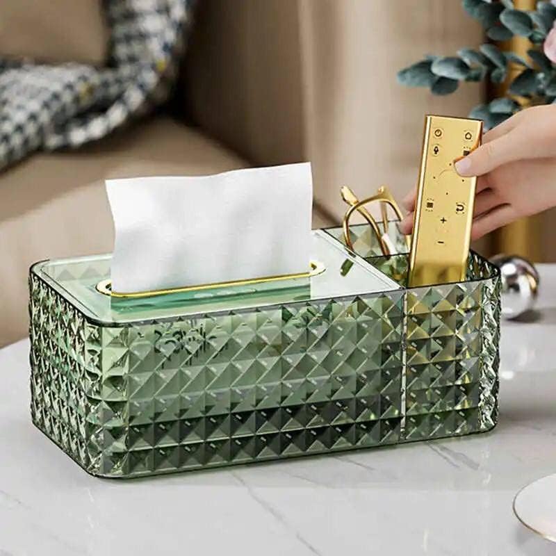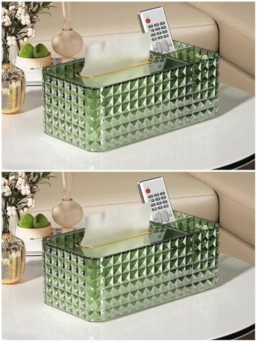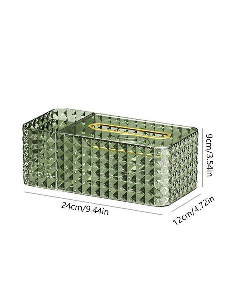 Generic - منظم علبة مناديل كريستال عصري - حامل مناديل اكريليك مع مساحة تخزين للمكياج وجهاز التحكم عن بعد والاكسسوارات (لون اخضر داكن (قطعة واحدة)