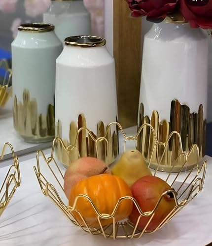 • مصنوع من معدن مطلي بالذهب المقاوم للصدأ، تم تصميم هذا الوعاء ليدوم طويلاً، ويحافظ على لمعانه وجماله بمرور الوقت، مما يجعله استثمارًا جديرًا بالاهتمام لديكور منزلك.