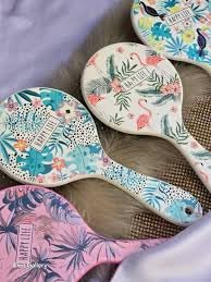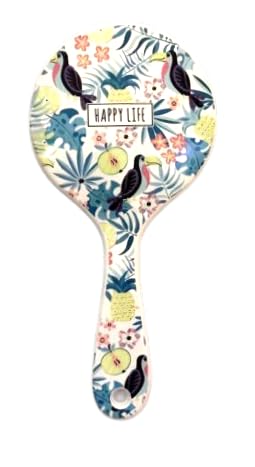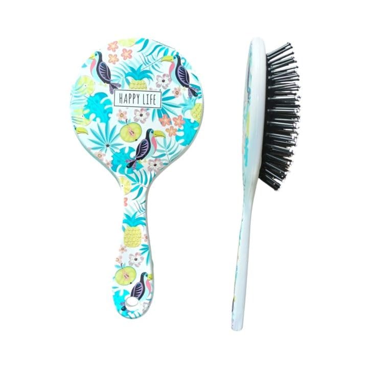 MOHRAS - فرشاة فك تشابك الشعر من موهرا، نمط زهور استوائية، فرشاة مجداف بشعيرات ناعمة - mo-4 (ابيض)