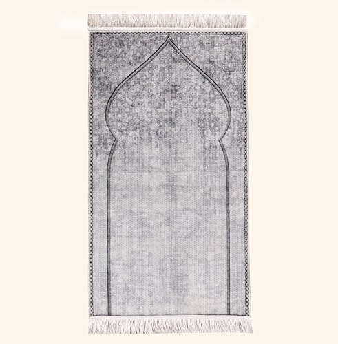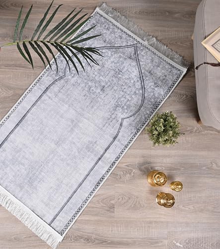 MORANO - سجادة صلاة فاخرة من مورانو بتصميم نور 65 × 115 سم، سجادة صلاة ناعمة ومريحة للمنزل والمسجد والسفر (رمادي)