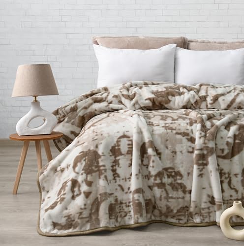 MORANO - مورانو بطانية من طبقة واحدة من سيلفرادو، موديل فينتيج، 100% بوليستر، 220 × 240 سم، بطانية دافئة خفيفة الوزن للشتاء (بيج)