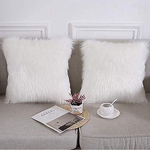 Moro Moro 3 - كيس مخدة من الفرو الصناعي الناعم المنفوش من مورو مورو 3 (أبيض، مقاس 45 × 45 سم)