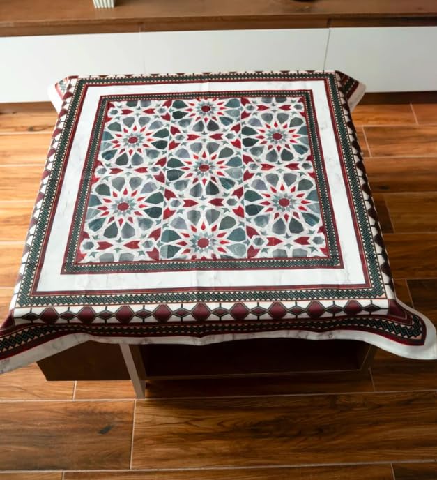 Generic - مفرش طاولة بنمط هندسي مغربي، قماش مخملي ناعم، متوفر بمقاسات متعددة، تصميم نجمة حمراء وخضراء، غطاء طاولة طعام لـ 6-8 اشخاص (140 × 140)