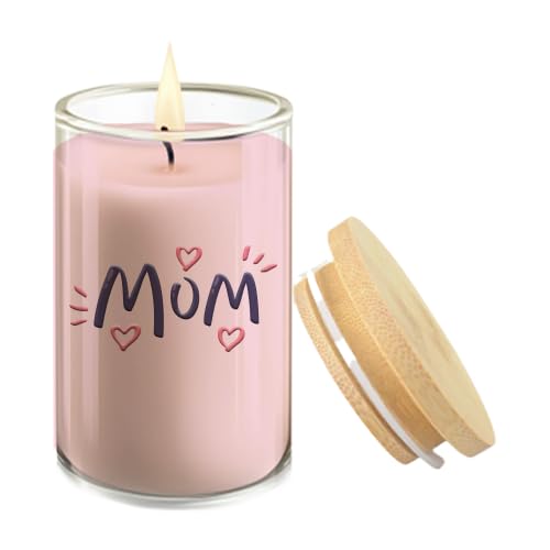 Generic - Mother's Day Scented Candle with Mom Design, Pink, Glass Jar with Wooden Lid, Gift Theme