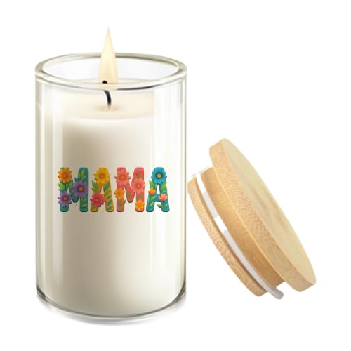 Generic - شمعة معطرة لعيد الام مع غطاء خشبي، حاوية زجاجية، تصميم زهور ماما
