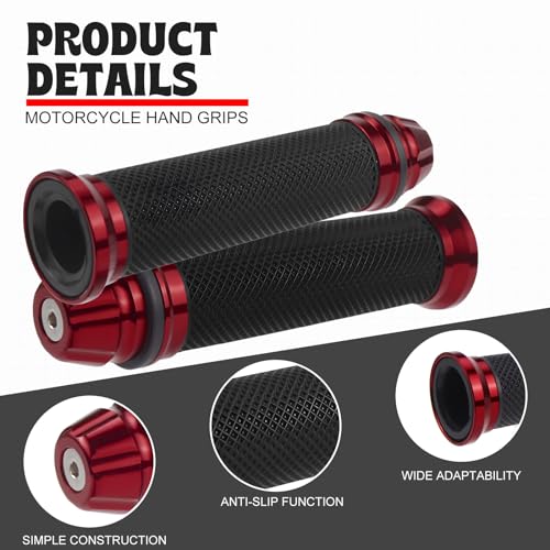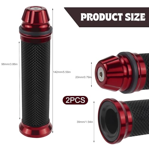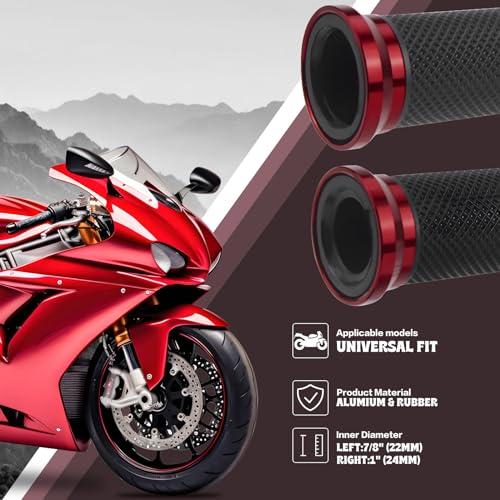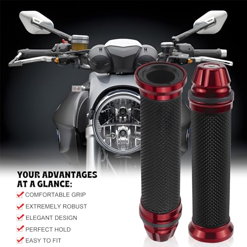- محتويات الصندوق: سوف تحصل على مقبضين لمقود الموتوسيكل (1 × يسار + 1 × يمين). مناسب لمعظم مقابض الدراجات النارية ذات ذراع المقود الأيسر22 ملم وذراع المقود الأيمن 24 ملم لغاز الالتواء (يرجى التأكد من قطر ذراع المقود الخاص قبل الشراء).
