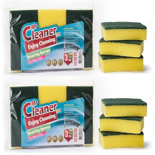 Mr.Cleaner - عرض التوفير اسفنجة مطبخ مسطحة 3 قطع + 3 قطع لجميع اغراض المنزل من مستر كلينر