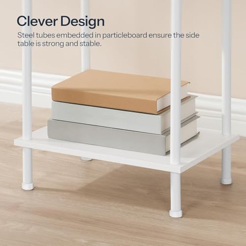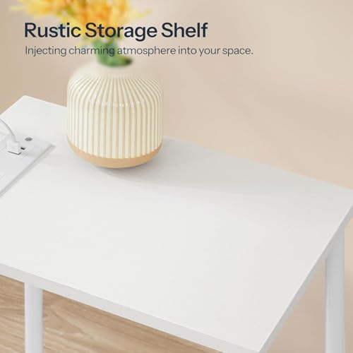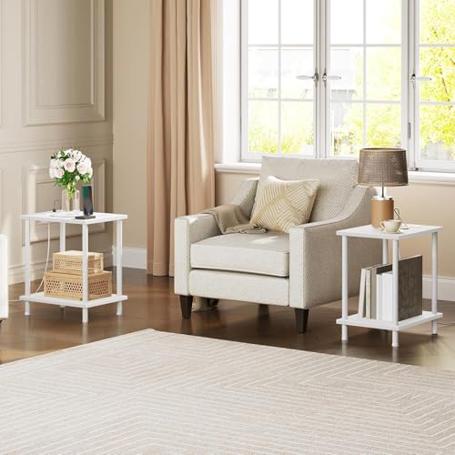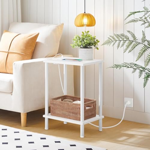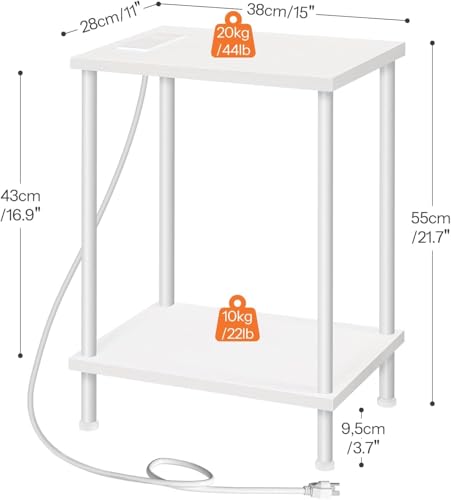 MTANK - طاولة جانبية لجانب السرير مع منفذ شحن من متانك - منضدة صغيرة من طبقتين مع رف تخزين مفتوح، طاولة جانبية بسيطة مع منافذ USB ومخارج لغرفة النوم او غرفة المعيشة او غرفة الاطفال ||