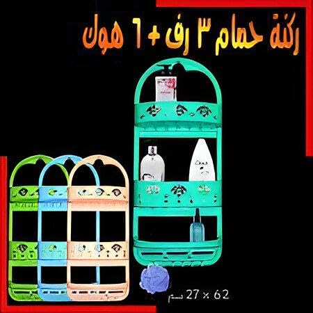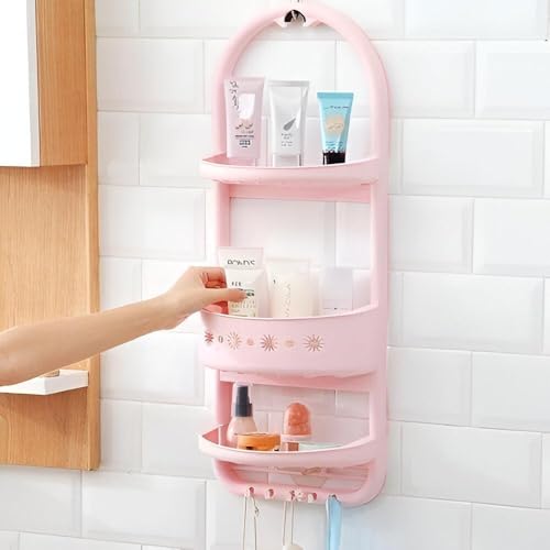 Generic - تخزين متعدد الوظائف للحمام - رف زاوية بلاستيكي بثلاث طبقات وخمسة خطافات، متوافر بألوان مختلفة، لمستحضرات التجميل والعطور والمكياج والتوابل