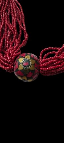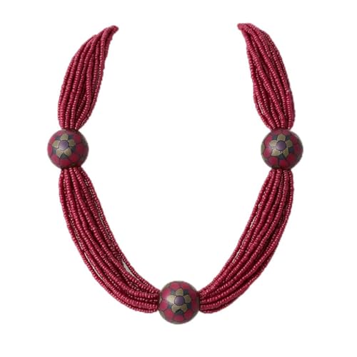 Generic - عقد متعدد الخيوط من الخرز الاحمر مع خرز مزين بالزهور، نمط تقليدي