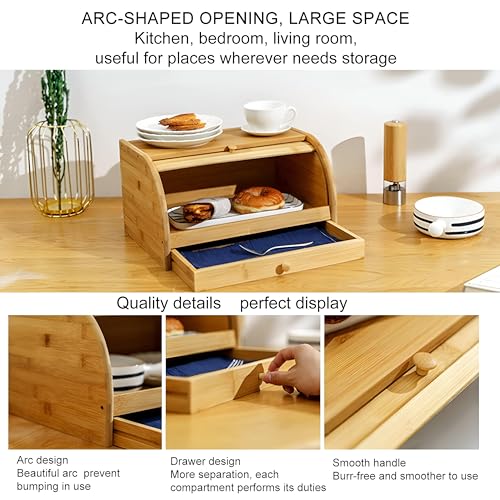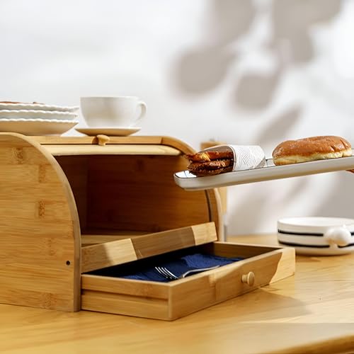 Generic - صندوق طعام متعدد الوظائف - حاوية خبز على شكل درج مع فتحات مدمجة للاواني والمناديل والبهارات لتنظيم المطبخ الانسيابي