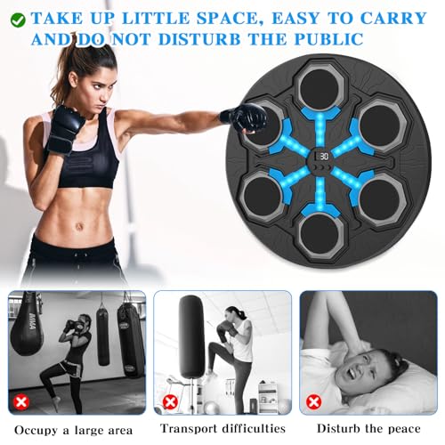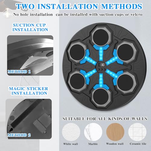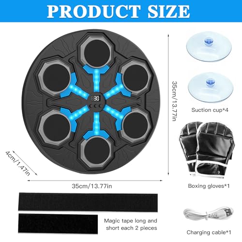 - آلة ملاكمة موسيقية احترافية: آلة صندوق الموسيقى مجهزة بـ 15 سرعة قابلة للتعديل لتلبية احتياجات معظم الأشخاص. تتكون آلة الملاكمة هذه من مضيف مثبت على الحائط وكابل شحن USB، مما يزيد من مرونة وتنسيق الجسم، وتحسين الاستجابة وتجربة متعة اللياقة البدنية في اللعبة. استمتع بتجربة لا حدود لها من سمارت ميوزيك بانش
