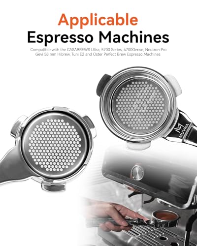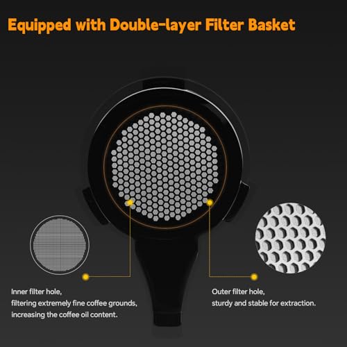 - استخلاص فعال، ونكهة معززة - مزودة بسلة فلتر دقيقة مزدوجة الطبقات سعة 18 جم، يتميز حجم وشكل كل ثقب فيها بأنه موحد ومتسق، كما أن شبكتها ناعمة وكثيفة، مما يتجنب بشكل فعال التسرب والرذاذ أثناء عملية الاستخلاص. هذا لا يحسن كفاءة الاستخلاص فحسب، بل يعزز أيضًا نكهة ومذاق القهوة بشكل كبير.