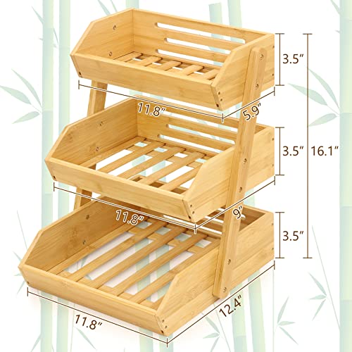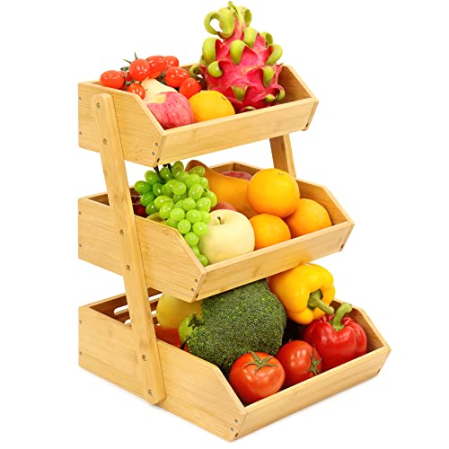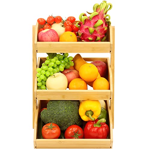 Mxbamhyc - بولة فاكهة من البامبو مكونة من 3 مستويات لترابيزة المطبخ، سلة تخزين خضروات بسعة كبيرة من Mxbamhyc، سمك 15 ملم