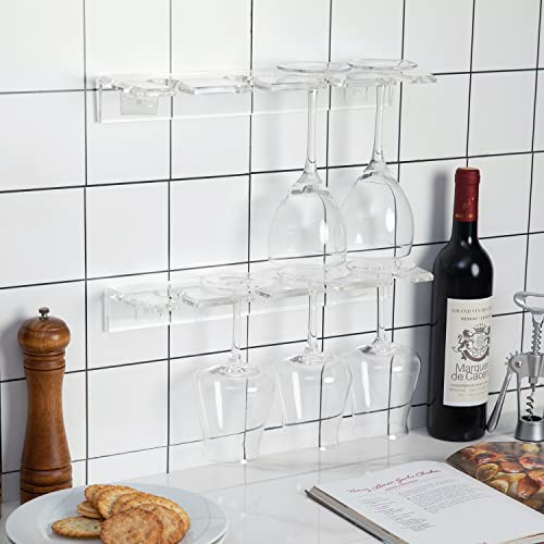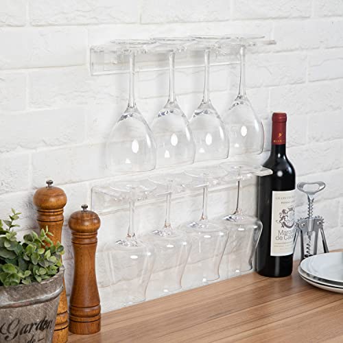 - مجموعة من 2 رف تعليق من الأكريليك الشفاف مثالي لتوفير المساحة في مطبخك أو مطعمك أو بار المشروبات