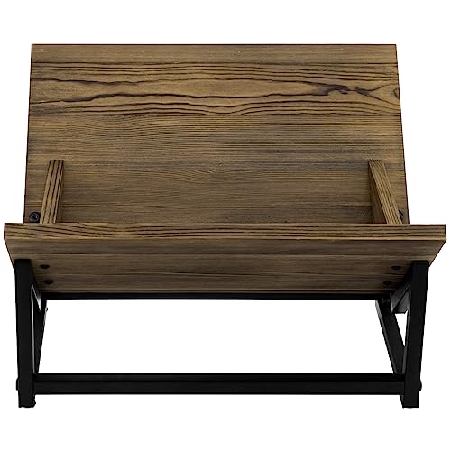 - خزانة كتب خشبية مائلة مزخرفة بلمسة نهائية بلون بني محروق ريفي لتنظيم سطح المكتب في المنزل أو المكتب **تتطلب التجميع**
