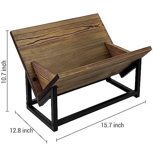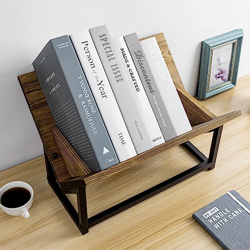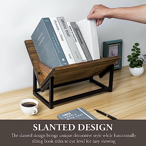 MyGift - ماي جيفت رف عرض الكتب مصنوع من الخشب الصلب المحروق والصناعي بلون اسود غير لامع من ريستيك، رف كتب منظم للتخزين على سطح المكتب، خزانة كتب قائمة مزخرفة