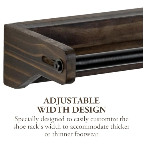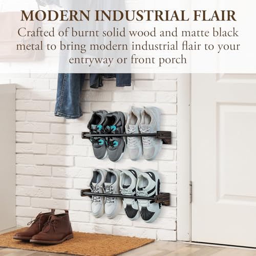 MyGift - ماي جيفت رف احذية معلق على الحائط، حامل احذية من الخشب الصلب المحروق من اوربان اندستريال، منظم تخزين مع قضبان معدنية سوداء غير لامعة ومقاسات قابلة للتعديل، مجموعة من قطعتين