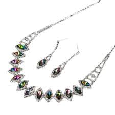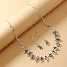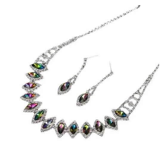 Generic - مجموعة مجوهرات الزفاف من ماي سوق-ستور واحدة متعددة الالوان مرصعة باحجار الراين على شكل دمعة واقراط وقلادة ذهبي معدن للبالغين الجنسين