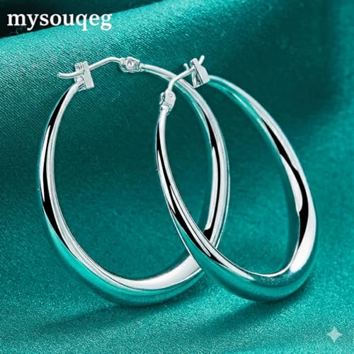 Generic - اقراط حلقية دائرية كبيرة ناعمة من الفضة الاسترليني عيار 925 من ماي سوق ايج، 36 ملم، مجوهرات حفلات الزفاف والخطوبة للنساء