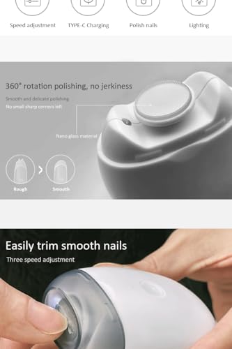 Generic - قصافة أظافر كهربائية مع 3 سرعات قابلة للتعديل من ماي سوق اي جي ستور، ماكينة تشذيب أظافر اوتوماتيك قابلة لإعادة الشحن بمنفذ USB وإضاءة ليد ورأس زجاج نانو، أداة مانيكير محمولة لأظافر اليدين والقدمين