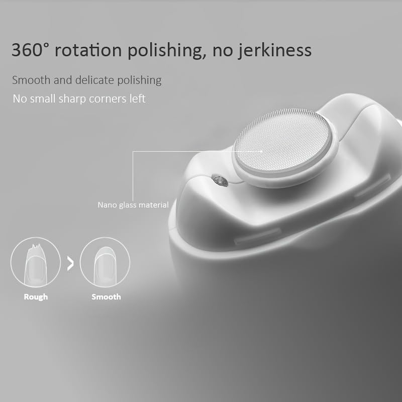 - تقنية تلميع متقدمة: تتميز بتلميع دوار 360 درجة مع رأس من مادة زجاج النانو التي توفر طبقة خارجية ناعمة ورقيقة للأظافر دون ضرر أو زوايا حادة، مما يحول الأظافر الخشنة إلى أظافر مصقولة بشكل مثالي.