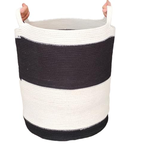 Generic - سلة غسيل قطنية بتصميم حبال من ام زد، جردل ملابس، سلة ألعاب للأطفال (40 × 43 سم)، أسود وأبيض
