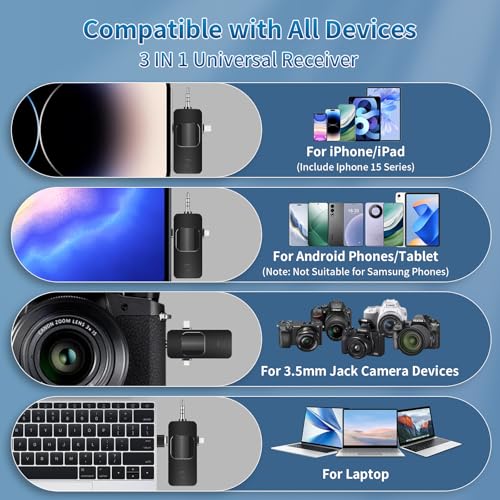 • توافق واسع لسيناريوهات متعددة مع دعم جودة لمدة 12 شهرًا: الميكروفون المطور لمدونات فيديو آيفون والذي يتميز بمستقبل عالمي 3 في 1 متوافق مع الموبايلات الذكية التي تعمل بنظام iOS/ أندرويد واي باد واللاب توب وأجهزة الكمبيوتر الشخصية والكاميرات، الميكروفون المخصص لصنّاع المحتوى مناسب للبث المباشر والتسجيل في الهواء الطلق ومؤتمرات الفيديو والمقابلات المباشرة.