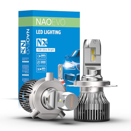 NAOEVO - مصابيح ليد أمامية من سلسلة ان اكس بقدرة 90 وات وسطوع 10000 لومن لكل مجموعة من ناويفو، قطعتين (45+45 وات) (H4)