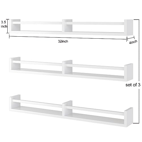 Napeollor - ارفف كتب لغرفة الاطفال 32 انش عائمة لغرف - مجموعة من 2 - منظم رف لديكور غرفة حضانة حائط لرف توابل المطبخ لون اخضر داكن خشب