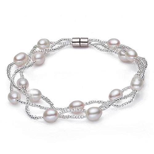 generic - سوار لؤلؤ المياه العذبة الطبيعي بلون ابيض