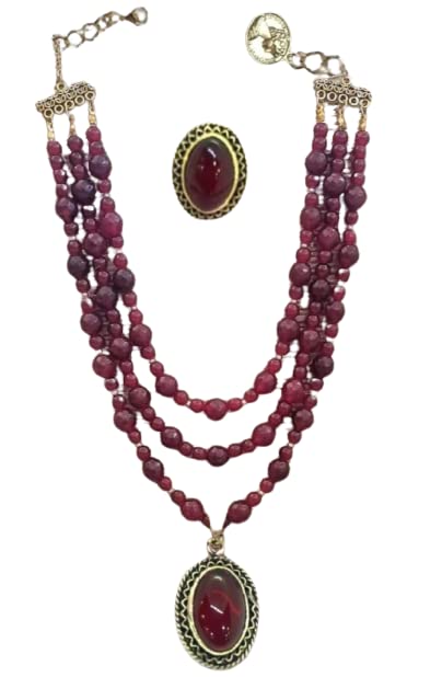 Generic - طقم نسائى عقد وخاتم من العقيق الطبيعى والنحاس البيور، ال اي سي