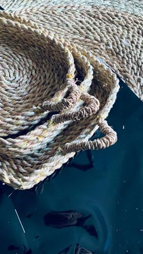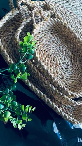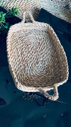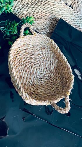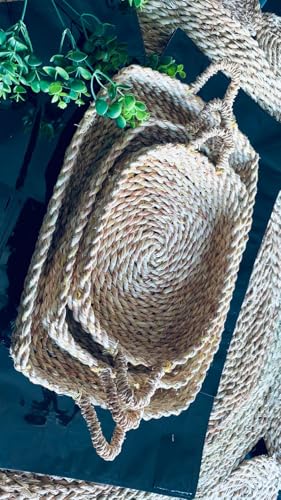 Generic - طقم سلال تقديم بيضاوية من الخوص الطبيعي مزودة بمقابض – تصميم يدوي أنيق للتخزين والتقديم والديكور – 3 قطع