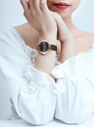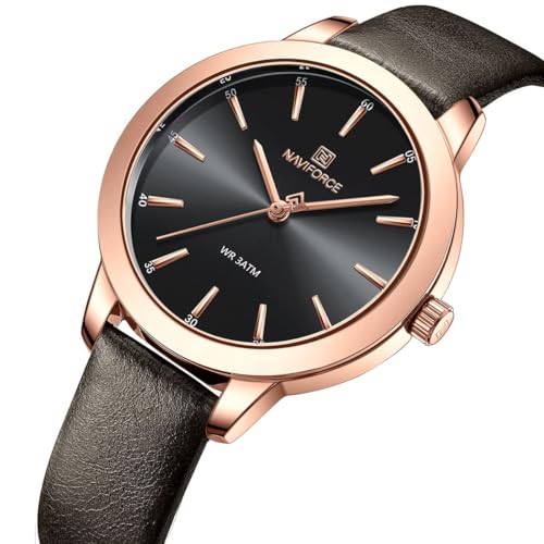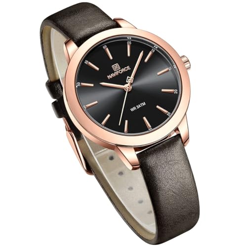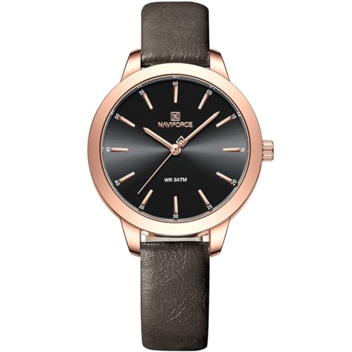Naviforce - ساعة للنساء من نافي فورس 5024 RG B رقمي تناظري بمينا أسود بسوار