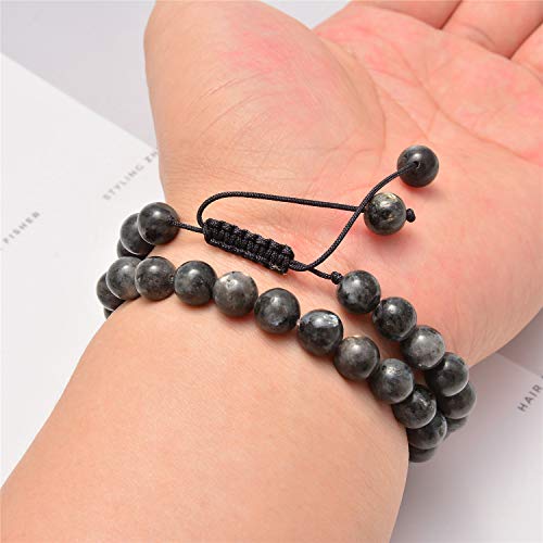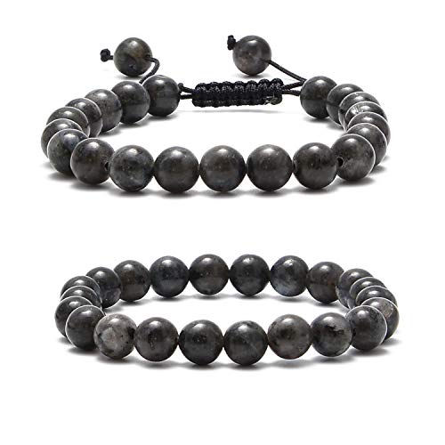 NCB - مجموعة من ازواج اساور من الاحجار الكريمة الطبيعية شبه الثمينة من ان سي بي مكونة من طبقتين من الخرز وقابلة للتعديل مناسبة لمجموعة الاصدقاء أو الازواج, 8mm, حجر, غير معروف