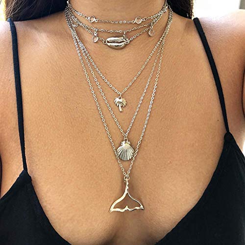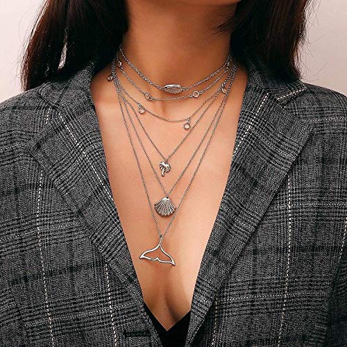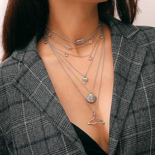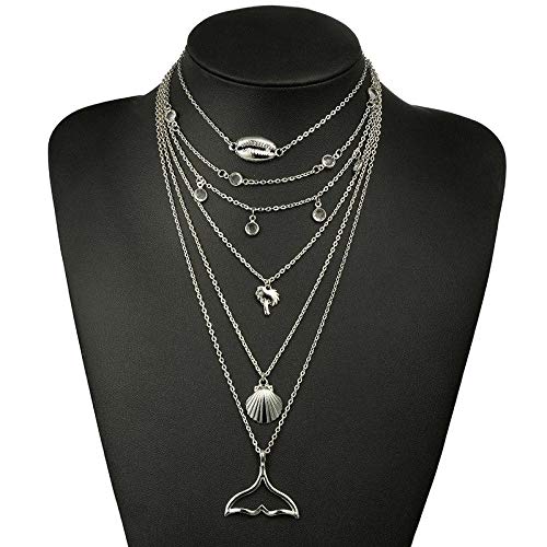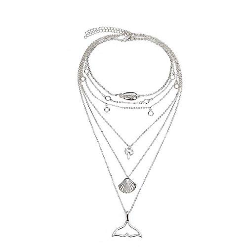 Other - عقد بوهيميا نمط الغجرى متعدد الطبقات - مطلي بالفضة، للأنثى