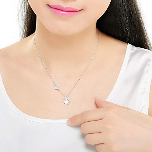 Other - عقد فراشة مزدوجة - ستانلس ستيل مطلي بالذهب الأبيض، للنساء