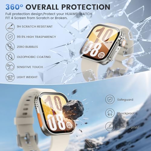 • 【حساسية عالية اللمس】هذا الجراب لساعة هواوي فيت 4 يحل مشاكل اللمس. مع وضوح HD بنسبة 99.99% وحساسية لمس عالية، يحافظ واقي الشاشة المدمج المصنوع من الزجاج المقوى على الجودة البصرية الأصلية واستجابة جهازك. استمتع بتجربة لمس سلسة ودقيقة تتحمل اختبار الزمن.