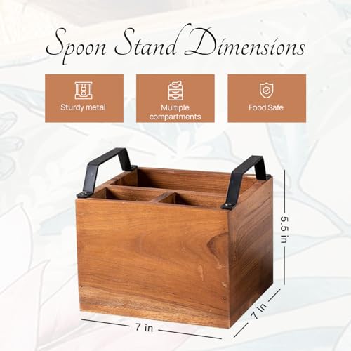 nestroots - حامل معالق للمطبخ، حامل أدوات مائدة لطاولة الطعام، حامل أدوات مائدة خشب من نست روتس (لون بني وأسود)