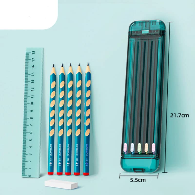 Generic - مجموعة اقلام رصاص جديدة وممحاة ومسطرة مكونة من 4 قطع من اللوازم المدرسية، هدية من مادة ABS لطلاب المرحلة الابتدائية، صندوق اقلام لطيف (شفاف)، ايه بي اس