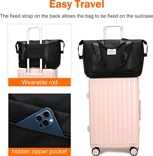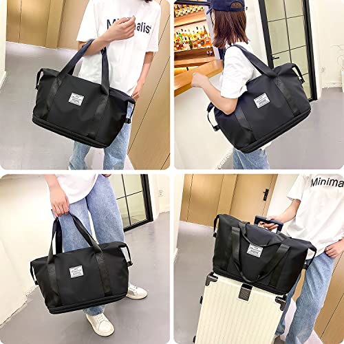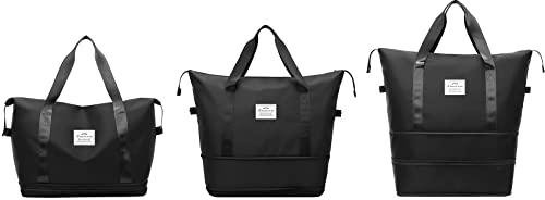 NEWIND - شنطة سفر متينة قابلة للتوسيع وشنطة كتف للعطلة الليلية والاسبوعية، للانشطة الرياضية مع جيب للاغراض الرطبة للنساء, أسود
