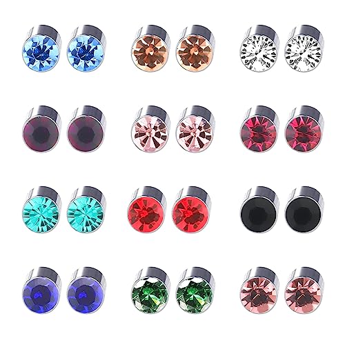 NEWITIN - 12 زوج من الحلقان المغناطيسية المرصعة للرجال والنساء الستانلس ستيل نيوتين حلق مشبك بدون ثقب حلقان مرصعة بحجر الزركونيا المكعب معدن زركونيا مكعب