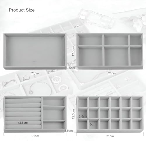 - 4 قطع بمقاسات كبيرة: الطقم يحتوي على أربع قطع متعددة الاستخدامات بمقاسات مختلفة لتنظيم الملابس الداخلية، الجوارب، الإكسسوارات أو أدوات التجميل بسهولة.