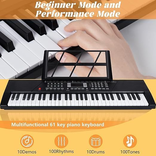 - [لوحة مفاتيح مثالية للمبتدئين]: تم تصميم هذا البيانو بـ 61 مفتاحًا لمساعدة الأطفال والمبتدئين على تعلم العزف بسهولة. يتيح لهم تجربة واقعية ومرنة من خلال المفاتيح الحساسة والألحان المدمجة التي تجعل التعلم ممتعًا وسهلًا خطوة بخطوة.